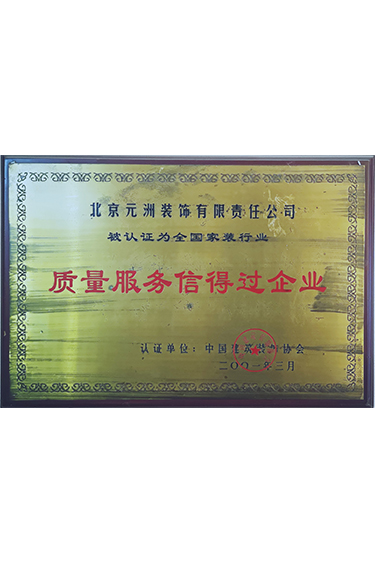中國裝飾協會頒發質量服務信得過企業